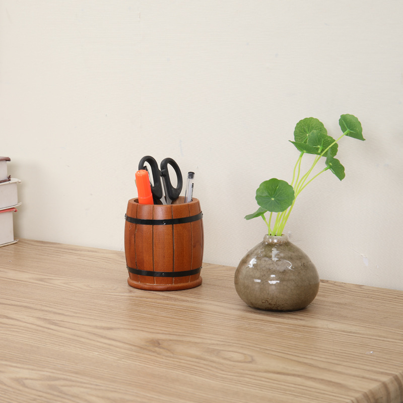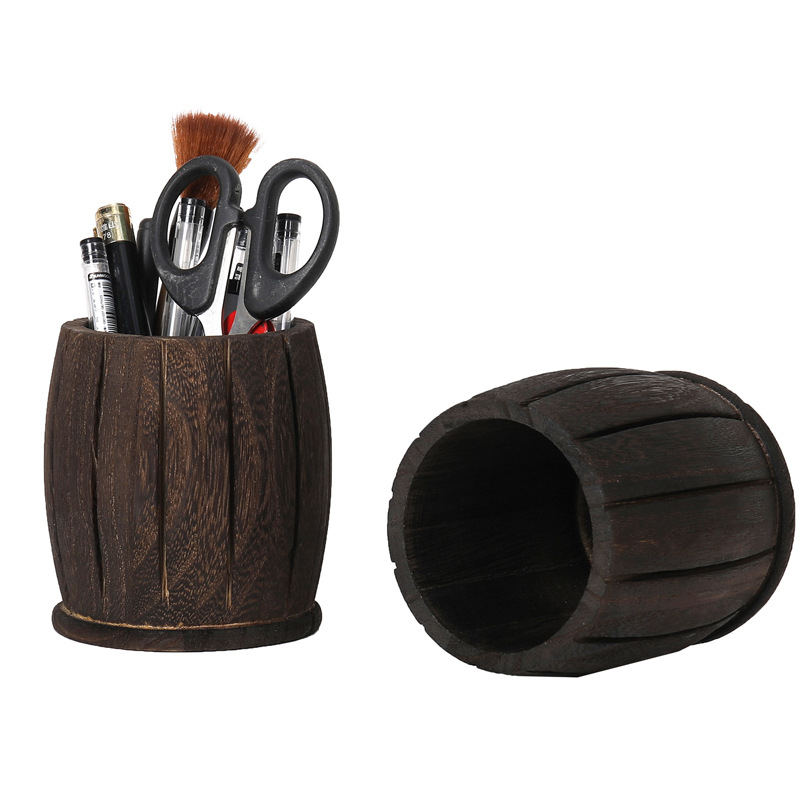 > 亚马逊爆款桌面办公用品木质笔筒多功能大容量商务收纳盒跨境热销