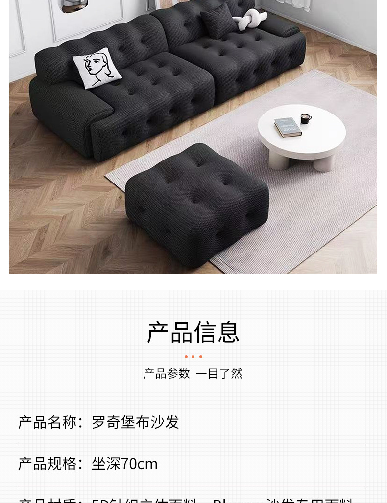 • 商品名称:意式极简罗奇堡布艺沙发现代简约客厅大小户型设计师直排布艺沙发