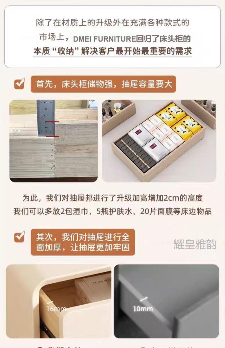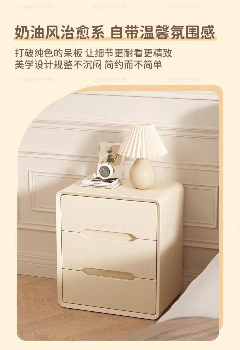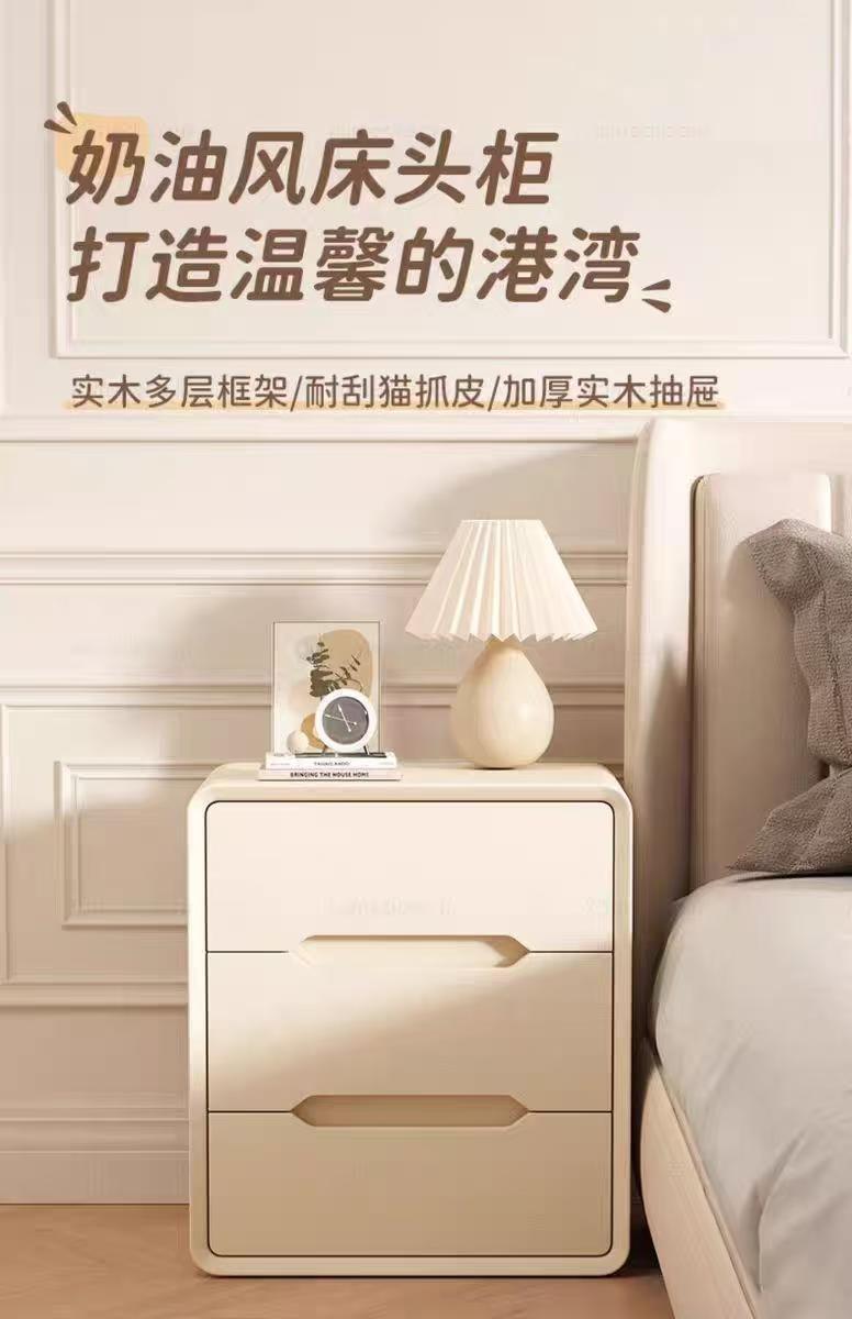 • 商品名称:实木床头柜卧室奶油风简约现代高级感小型三抽床边置物收纳储物柜