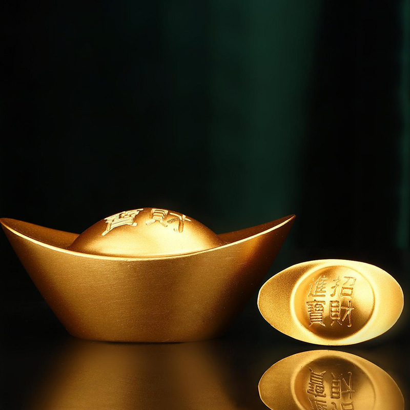 > 纯铜实心元宝摆件全铜仿真金元宝家用家居招财镇财大元宝厂家批发