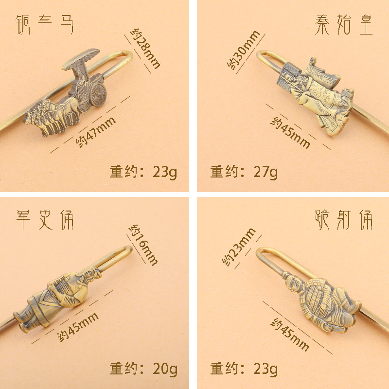 商品名称:金属书签定制 西安旅游兵马俑中国风文创纪念品 黄铜烤漆书签定做