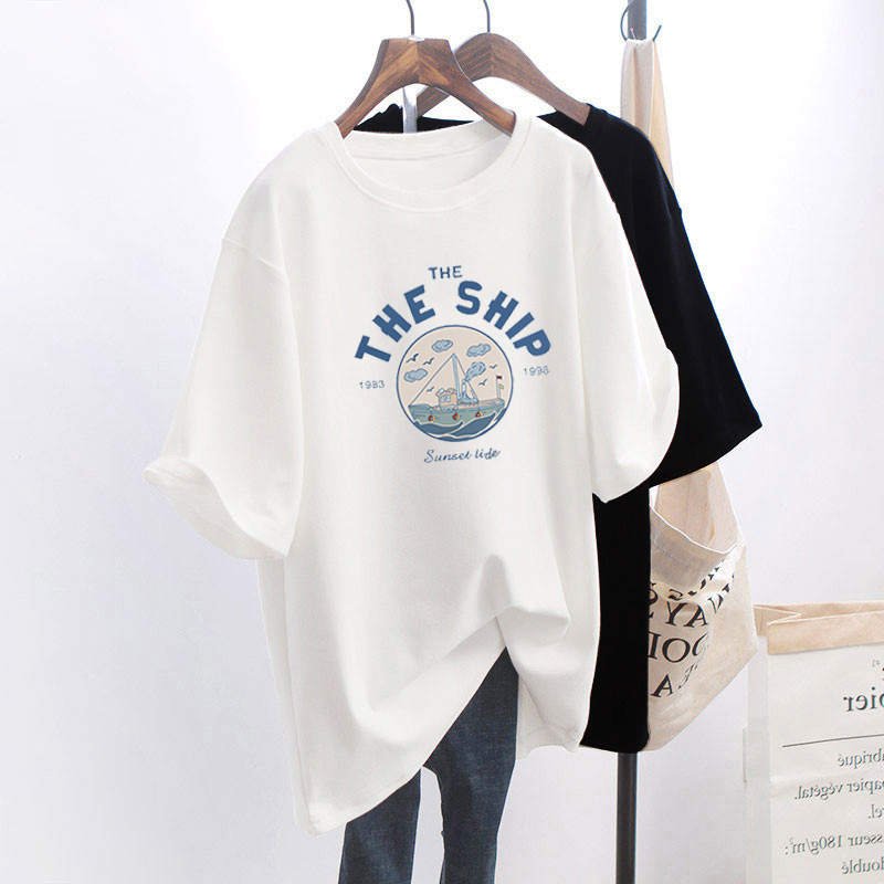 商品名称:ins港风短袖t恤女夏季2022年新款潮牌宽松纯棉体恤中长款白色上衣