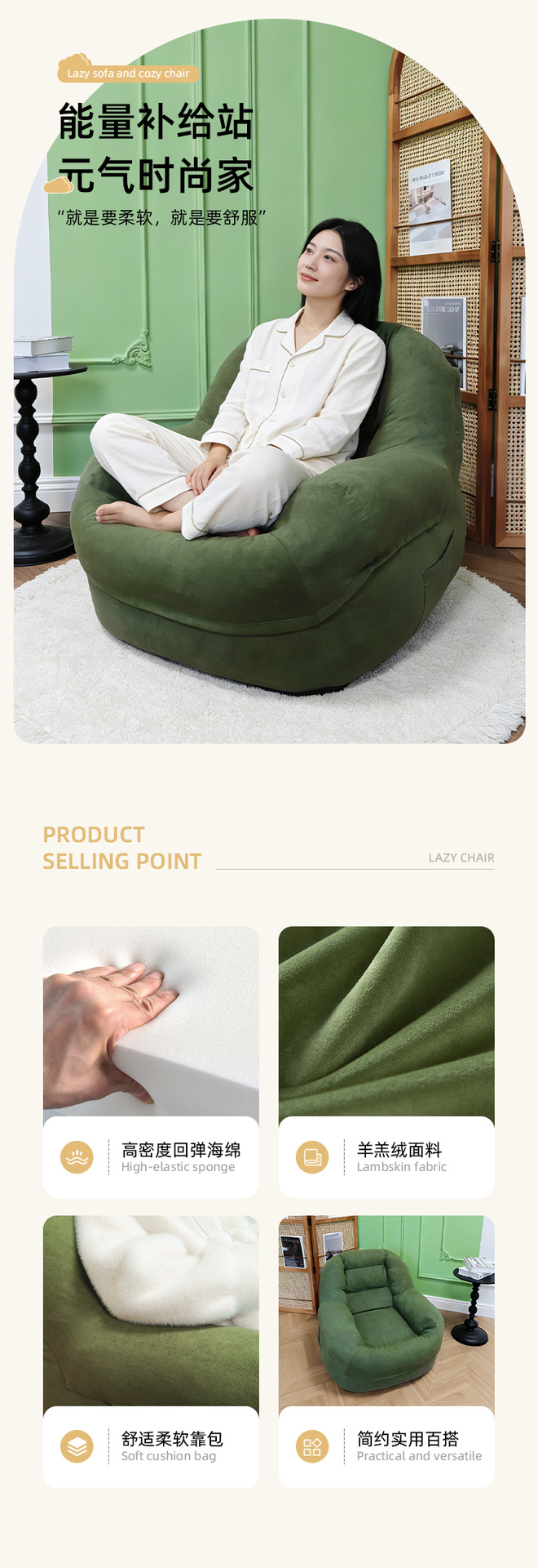 • 商品名称:懒人沙发可躺可睡卧室阳台房间单人小沙发窝窝椅榻榻米靠背躺椅